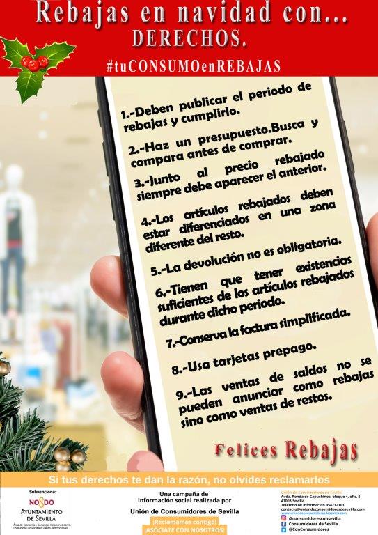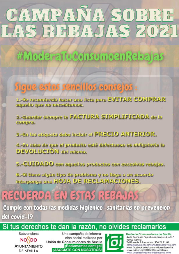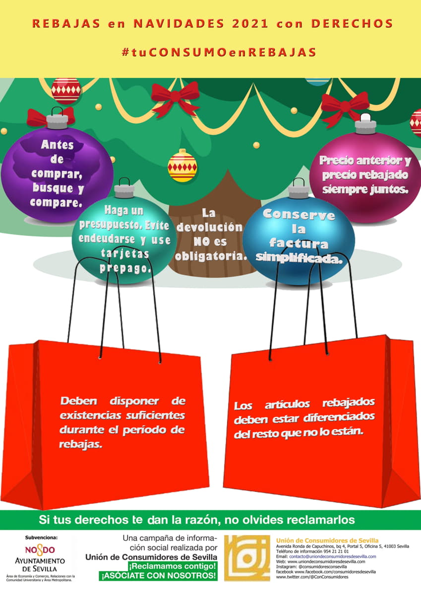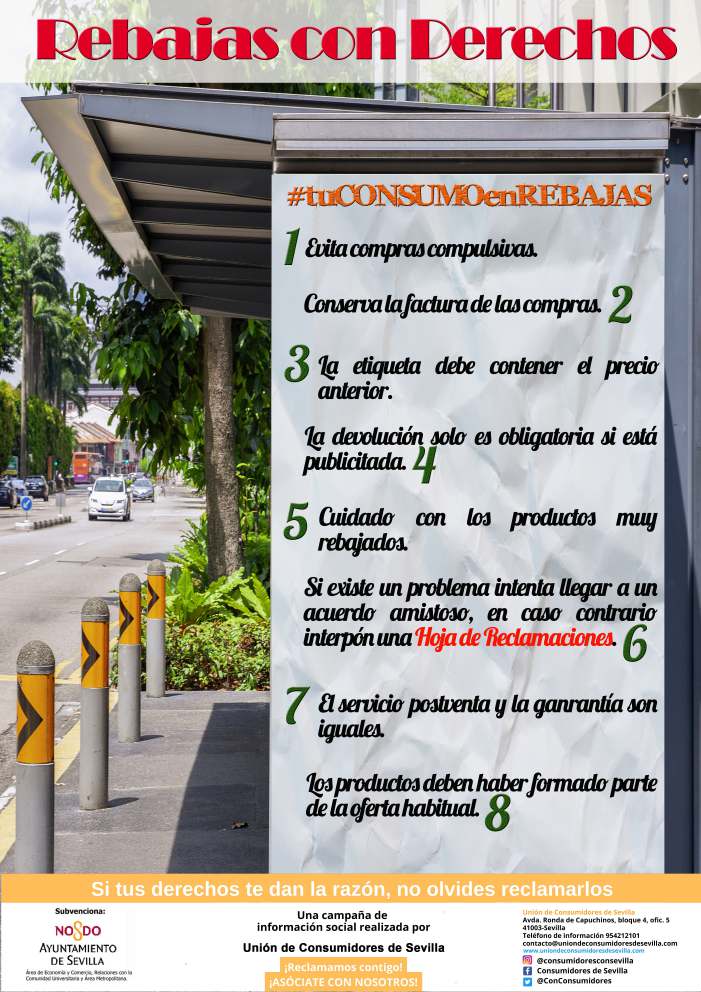 Desde Unión de Consumidores de Sevilla hemos elaborado esta campaña informativa para ofrecer unas recomendaciones y consejos a tener en cuenta durante las rebajas de enero. Durante este período el consumo aumenta y las compras adquieren un gran protagonismo. Debido ...