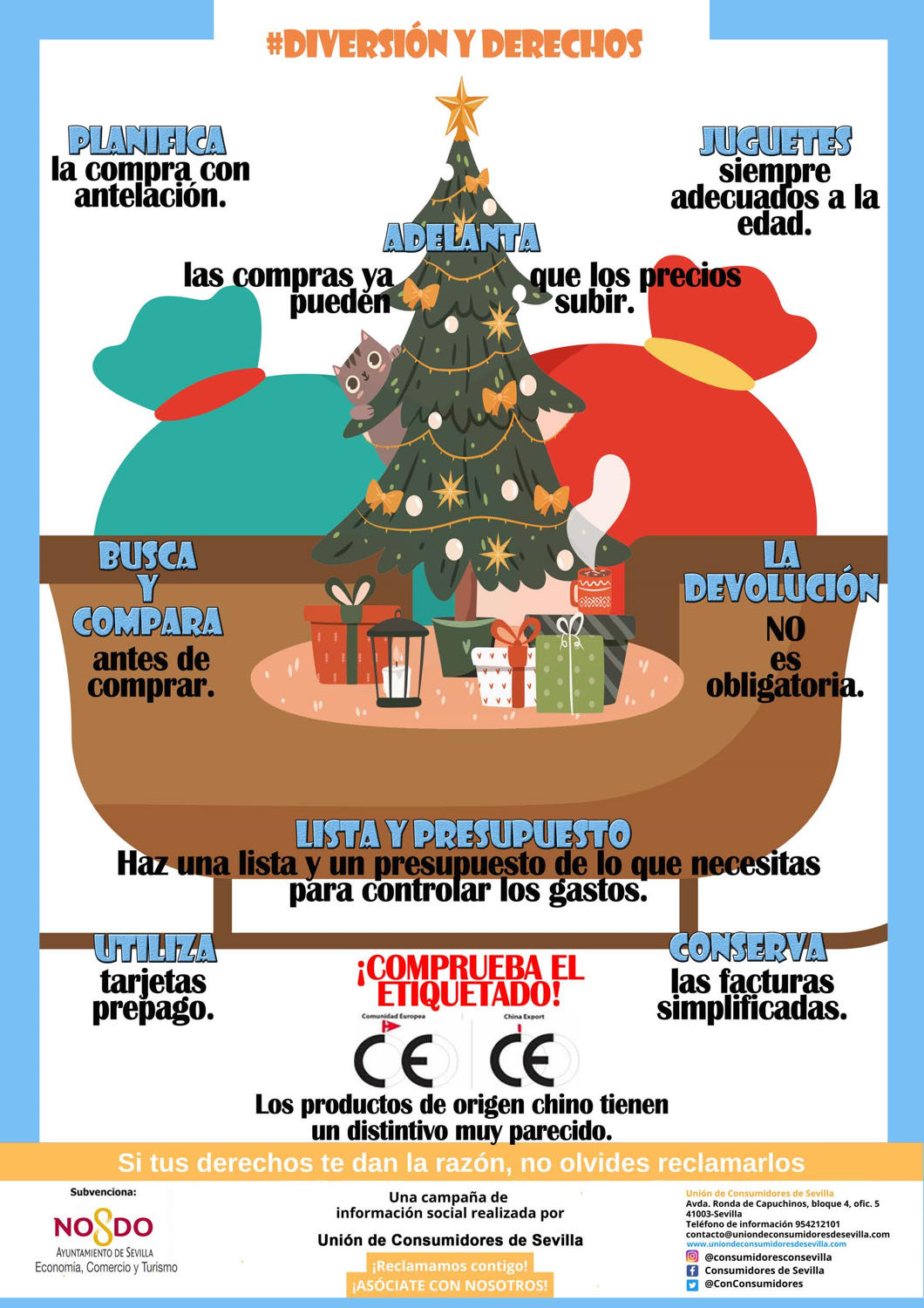 En estas fechas tan próximas a la Navidad, el consumo aumenta de manera notable y por lo general, se hace un consumo excesivo. No obstante, los usuarios y consumidores tenemos que tener presente que nuestros derechos siguen siendo los mismos ...
