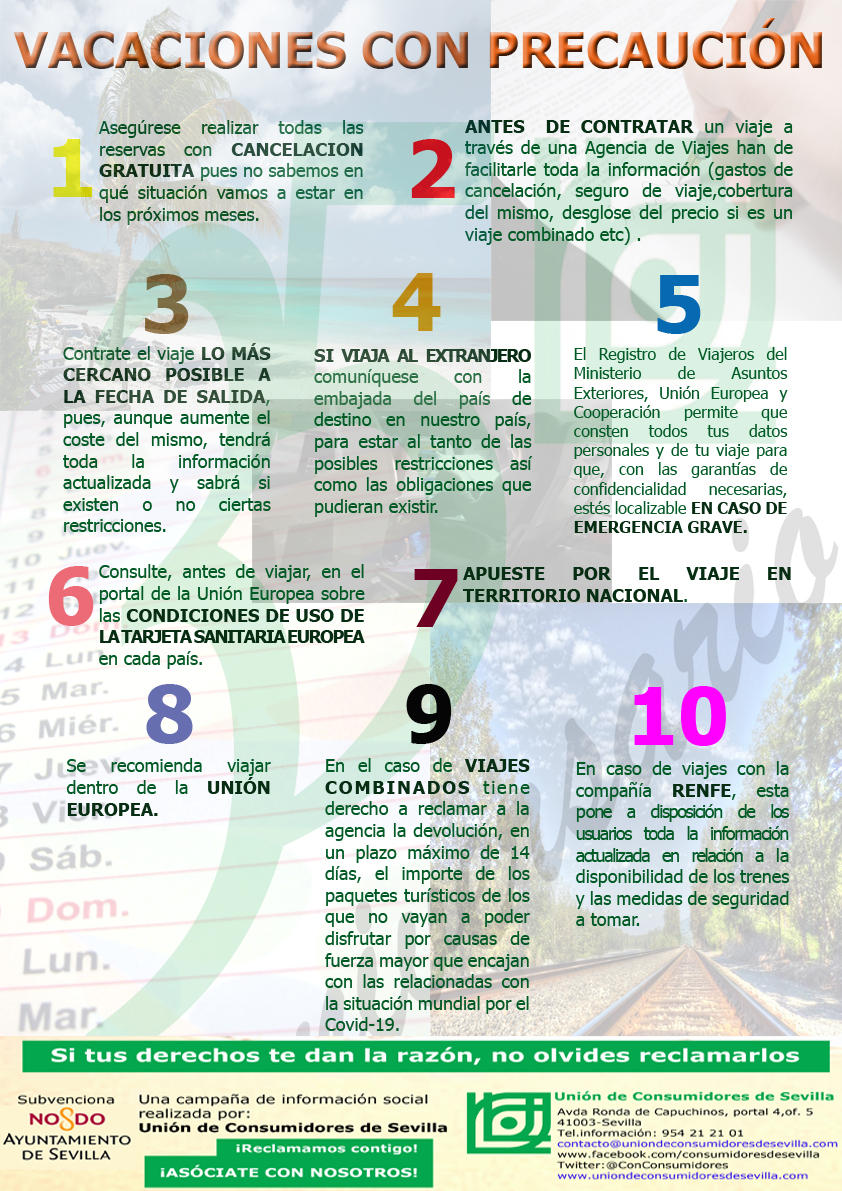 La Unión de Consumidores de Sevilla te ofrece una serie de recomendaciones básicas para colaborar en pasar unas vacaciones sin agobios, poniéndonos a disposición de todas las personas consumidoras que nos necesiten en estos meses. Estamos entrando en la época ...