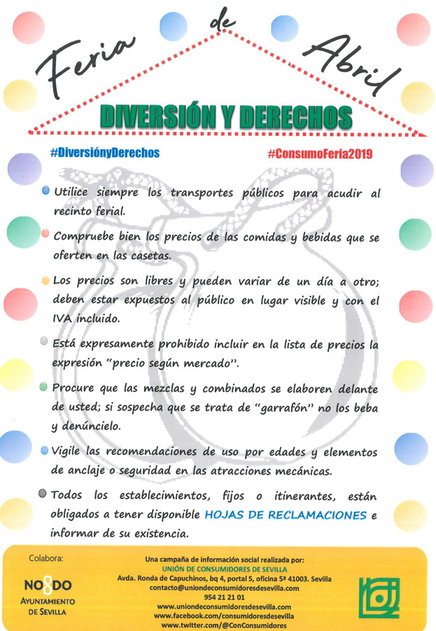 Durante el mes de abril hemos venido realizando una campaña informativa entre las personas usuarias de la entidad, centros sociales, cívicos y distritos de la ciudad de Sevilla para dar a conocer algunos consejos a tener en cuenta en la Feria de Abril de Sevilla.
